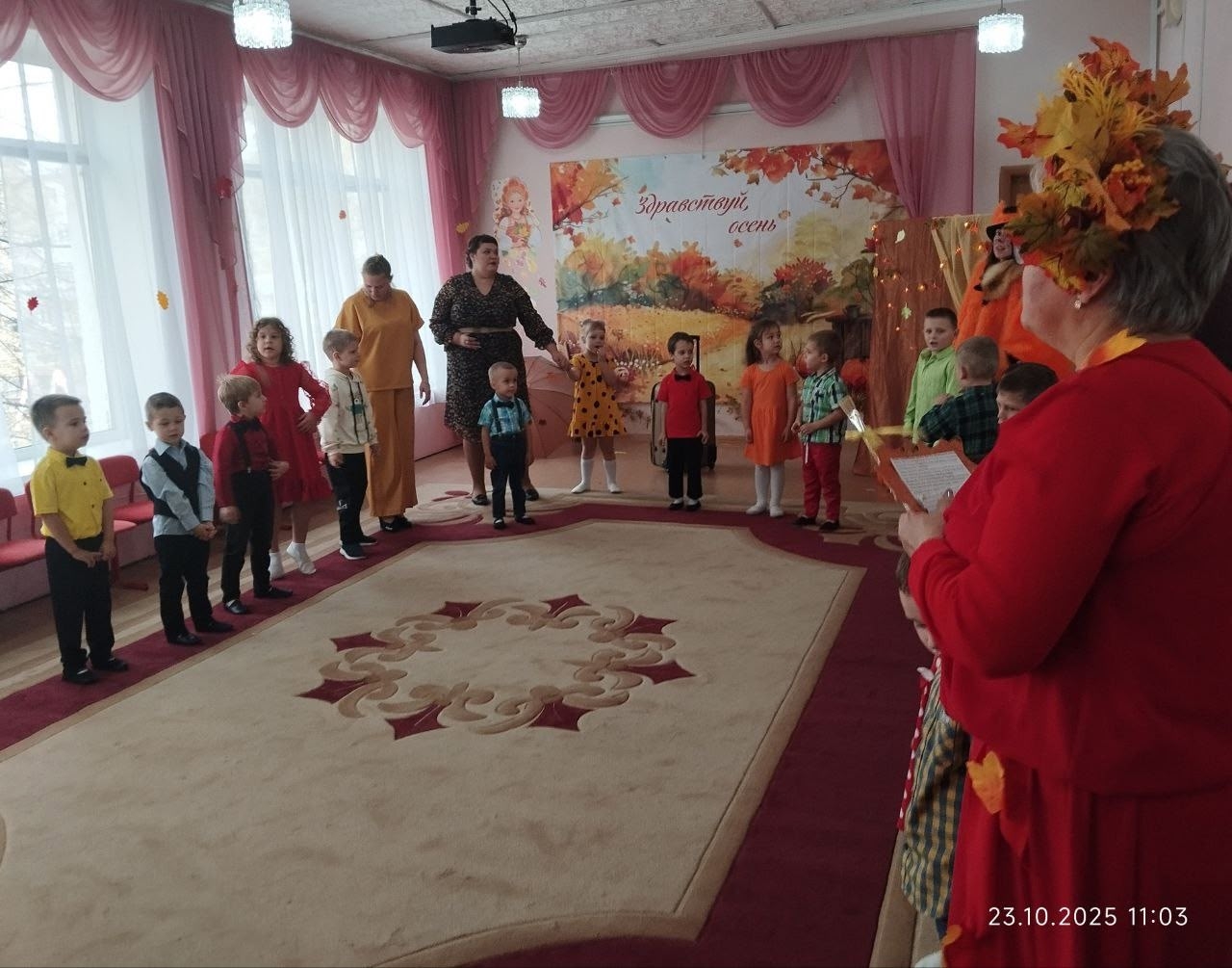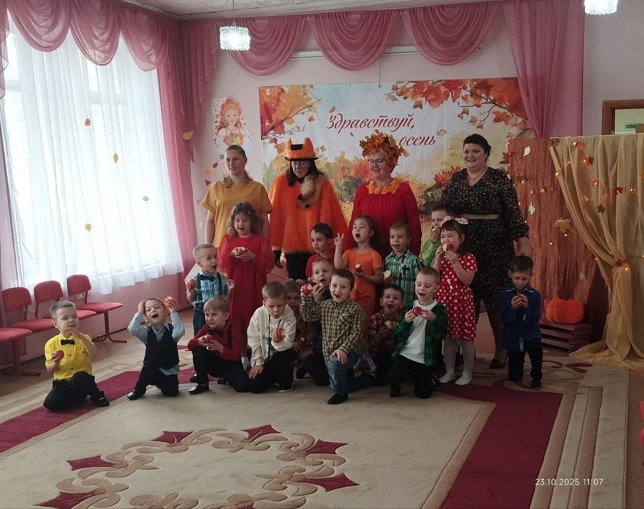Осенний утренник — это волшебные краски, яркие эмоции, а вовсе не «унылая пора». Старшая группа «Вишенка» знают об этом не понаслышке, потому что скучать им точно было некогда, ведь ребята усердно готовились к выступлению перед своими самыми важными гостями- мамами, папами, самыми близкими людьми. Праздник начался с изящного «Осеннего вальса», который погрузил всех в завораживающую атмосферу тепла и красоты осенних листьев. Далее программа праздника продолжилась веселыми заводными песнями и танцами, стихами, впечатляюще яркой сценкой с овощами и лирическим отступлением в виде Хоровода, которые перенесли зрителей в плодово- овощное царство и затем вместе с Осенью и Лисой в осеннее игровое пространство- игры «Доскажи словечко», «Какое варенье?», «Перейди через лужи в галоше» и «Перепрыгни лужицу на двух ногах» украсили праздник весельем. Вкусные яблоки в подарок от Осени пришлись как нельзя кстати, ведь Осень- самое радушное время года, встречающее и радующее всех разнообразием вкуса и урожая!