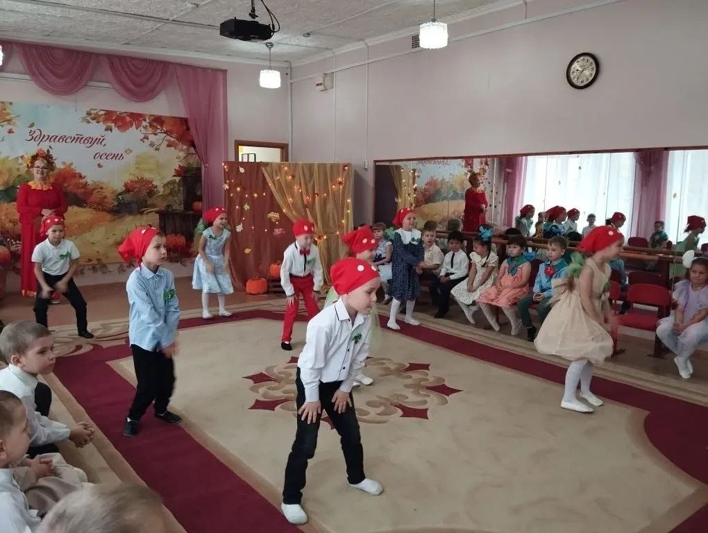 21 октября открылся сезон праздников, посвящённых золотой осенней поре- в подготовительной к школе группе «Клубничка» он прошёл первым. Воспитанники были рады приходу красавицы Осени и с нетерпением ждали встречи с ней встречи, готовились очень усердно. Вместе с Осенью и для неё и гостей воспитанники пели задорные песни, танцевали разнообразные танцы- и нежный вальс с листочками, и Танец мухоморчиков, и Хоровод «Эх, картошечка», играли в веселые игры, отгадывали осенние загадки, показали яркую театрализованную сценку «Овощное ассорти». А самым ярким и запоминающимся эпизодом стал сюрпризный момент – появление модницы Лисы, вернувшейся из путешествия, ну и конечно получение заслуженных призов из рук Осени-корзин с яблоками на радость всем ребятам!